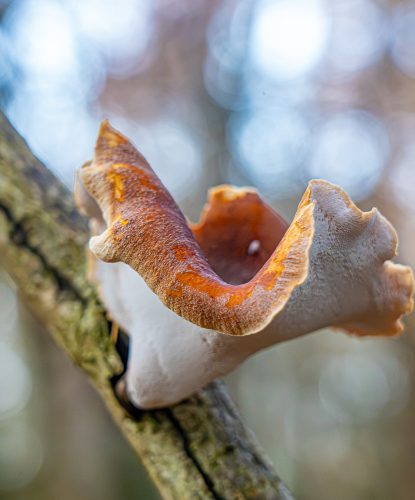 I laced up my boots and went for a walk, deep into the woods. I hadn’t been in the deep woods for ages, but with the leaves falling continuously these days, there was more light than normal through the trees. I walked for a while, longer than I’d anticipated and by the time I was thinking it would be a good idea to head for home, the good light was gone. Then I found today’s PoD. I’ve no idea what variety of fungi this one belongs to, but I liked the shape and colour so I snapped a few shots of it. If I get a chance in the next few days I’ll go back in and try for some better shots.