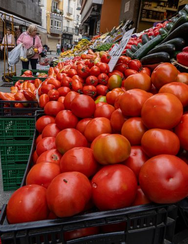 - Outdoor fruit and vegetable market.