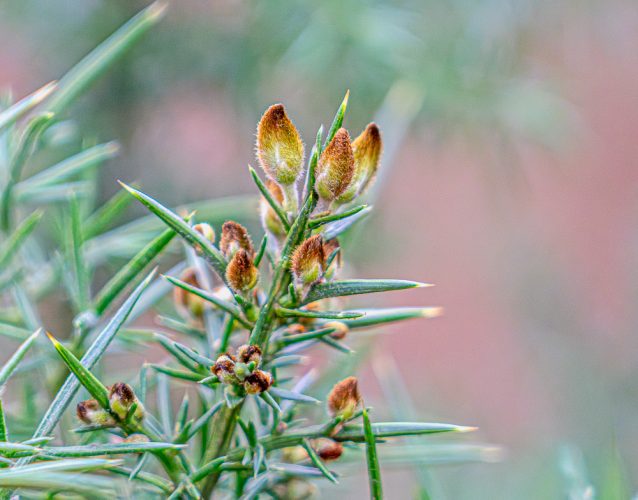 By the time I’d got myself sorted, Scamp had returned from FitSteps so I allowed myself an hour and a half or thereabouts to grab some photos. The hand warmers didn’t seem to be balanced properly to start with, but later in the walk I realised only one face of the heater works, the other remains relatively cool. I really should read the instructions first, but I never do. I think I was paying too much attention to the hand warmers and didn’t realise the camera lens was set wide open and therefore not at its most creative setting, anyway I did take some blurry photos of Cladonia lichen and a few shots of the hairy looking buds on a gorse bush. The gorse buds got PoD.