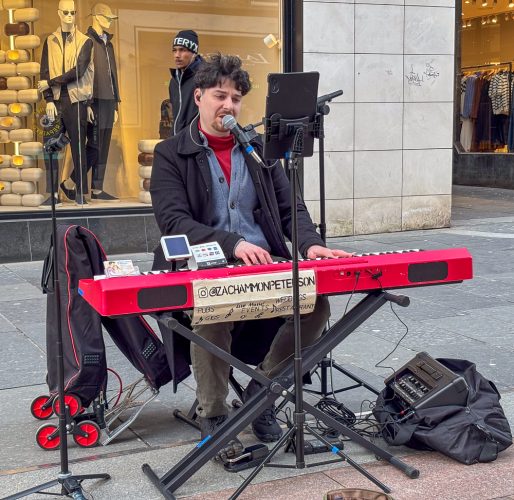 I’d forgotten to take a camera with me, so today’s photo came from my iPhone. It’s a bloke playing a keyboard on Bucky Street. He deserved a quid for sitting playing to an unappreciative audience, except me!