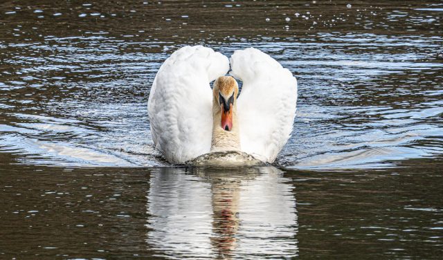 The furthest I got today was a walk around St Mo’s pond with my Tamron 70-180mm, watching the swans chasing the Canada Geese away from the area where they were nest building. Although the swans seemed to be winning, I felt that the geese were just giving them the run-around. Eventually the swans returned to the nesting area, but not before one swan puffed itself up and became quite threatening to me. I took Jamie’s hint and left sharpish, but only because my portable hand warmer had run out of charge … honest!