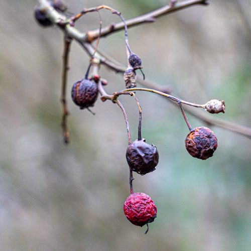 Walked over to St Mo’s more for the walk than for any photos, but the rain kindly stayed away for the half hour I was there. I got a couple of shots. PoD went to desiccated hawthorn berries on almost bare branches.