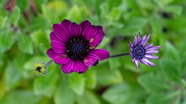 Instead we had rain. Almost continuous rain all today, the last day of October 2025. I did manage to get out to snap a few flowers in the garden. The winner was three Osteospermum flowers in the garden. One going over, one in full bloom and one that might, just might open to reveal its flower if the rain stops and the sun shines.